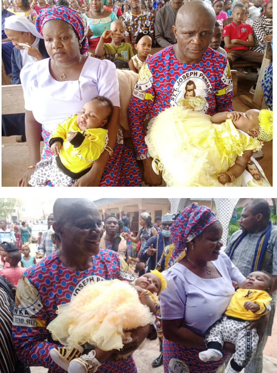 Mrs. Obileri concieved after 13 years, and gave birth to twins, a boy and a girl. The children were dedicated at a catholic church, known as st Joseph’s catholic Chururch in Akwa, on Sunday, September 19.